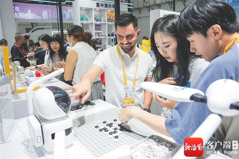 在消博会深圳馆,嘉宾与AI下棋机器人对弈。海南日报全媒体记者 王程龙 摄