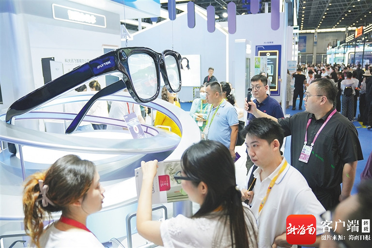 在消博会科大讯飞展区,展示的AI眼镜吸引嘉宾体验。海南日报全媒体记者 王程龙 摄